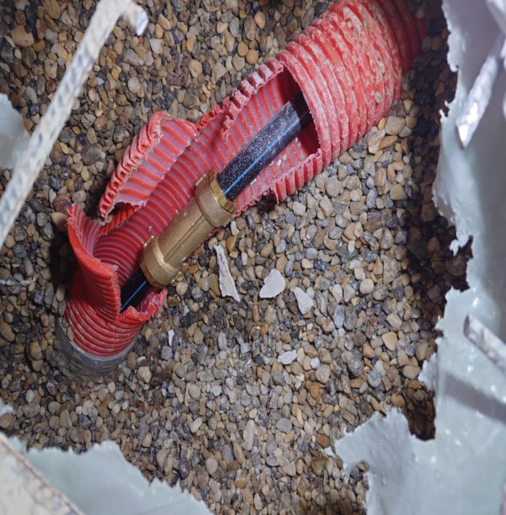 Une inspection vidéo par caméra endoscopique a été réalisée à l’intérieur de la gaine protégeant la canalisation d’alimentation d’eau froide, permettant d’identifier visuellement l’état du réseau.